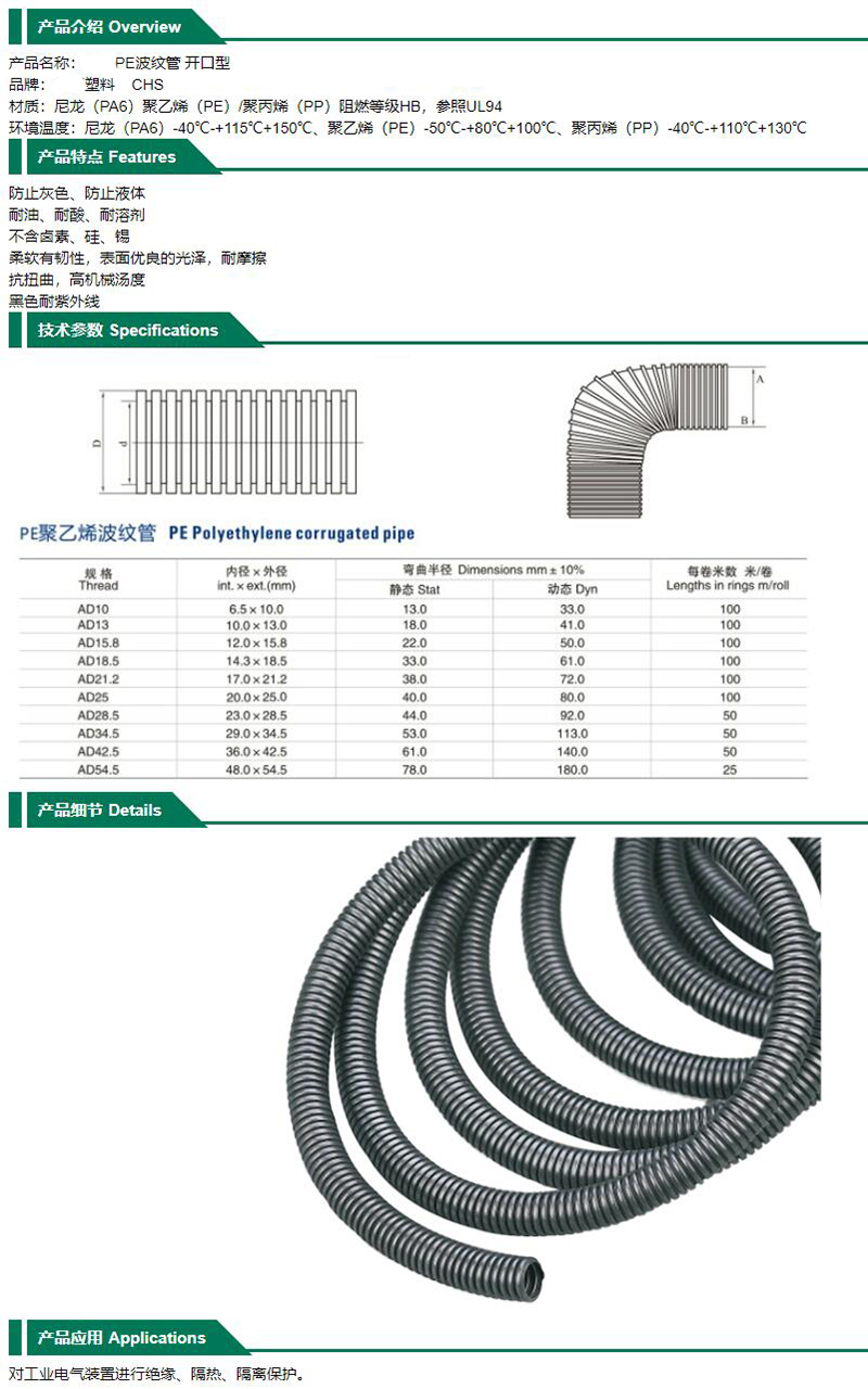 UTICA/优迪佧 GE70-400-3330 聚乙烯波纹管广泛应用于多个领域: