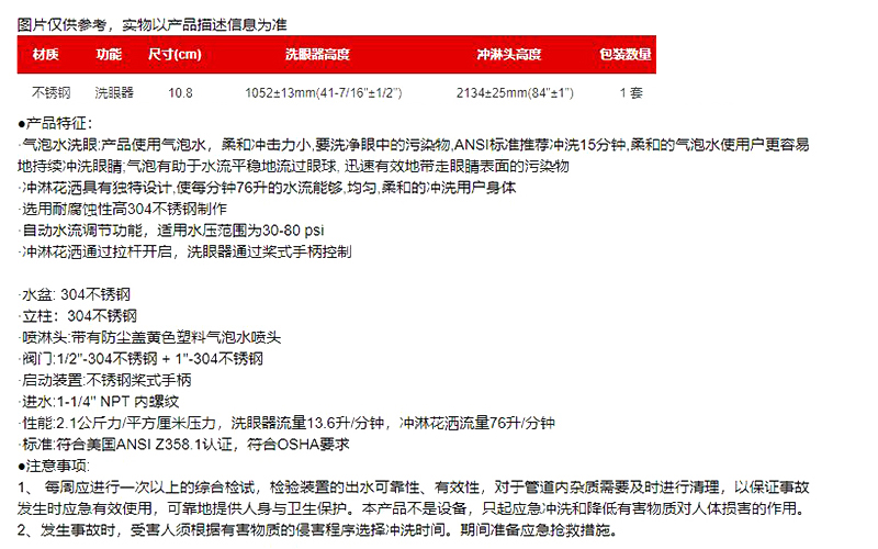 UTICA/优迪佧 复合式紧急冲淋/洗眼器 材质不锈钢 GE70-400-558