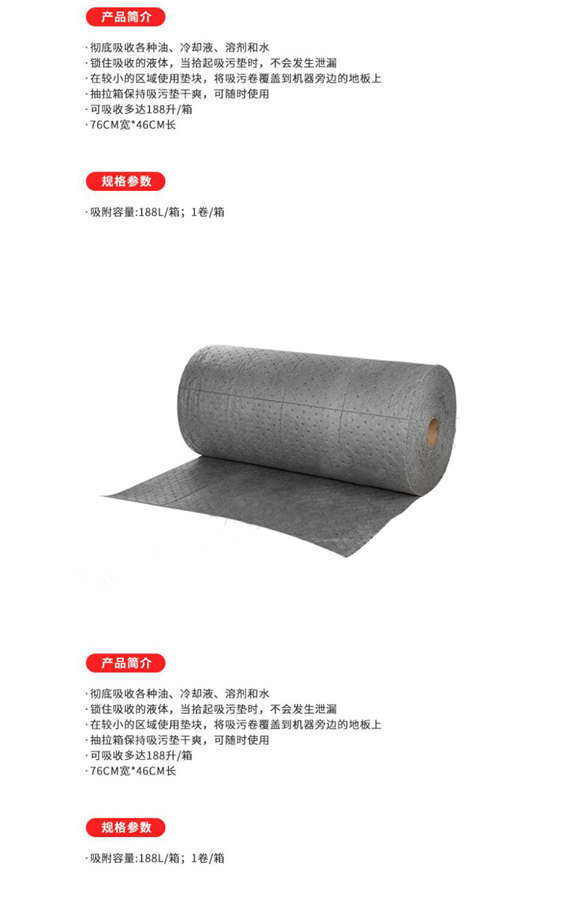 5 废弃处理:废弃的吸污卷应按照当地环保规定进行处理,避免随意丢弃造成环境污染。