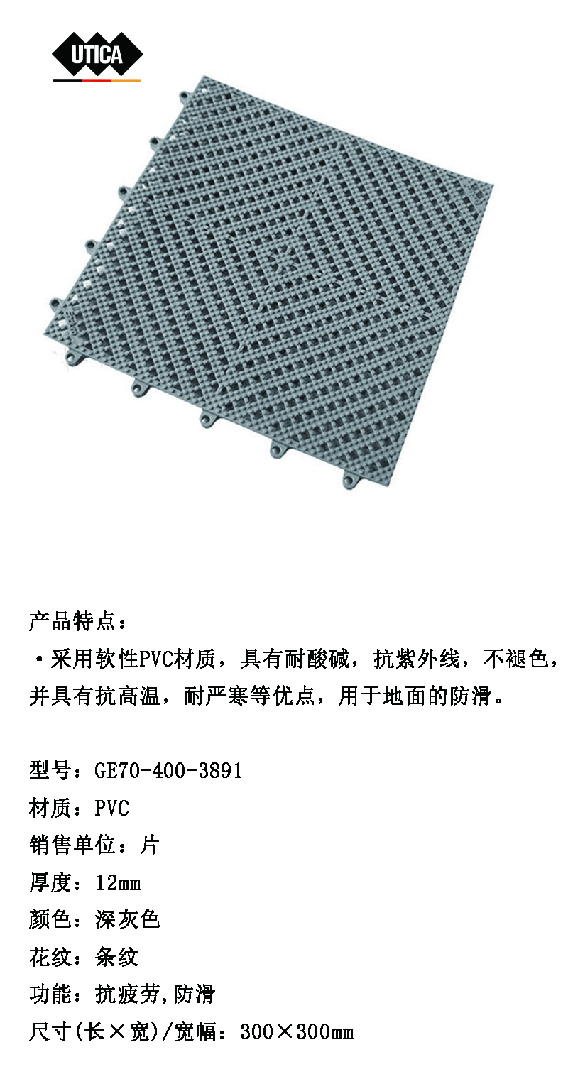 UTICA/优迪佧 洁伦疏水防滑拼块地垫 12mm*30cm*30cm GE70-400-3891