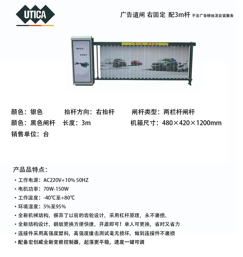 UTICA/优迪佧 广告道闸 3m GE70-400-3919