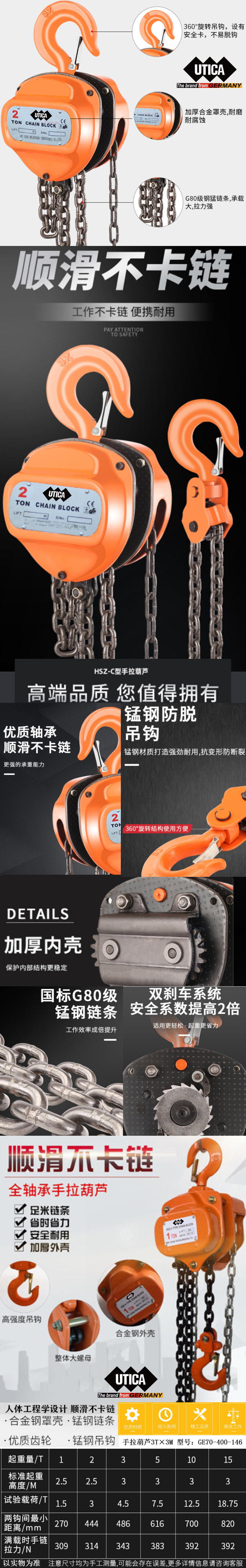 UTICA/优迪佧 手拉葫芦 3T GE70-400-146