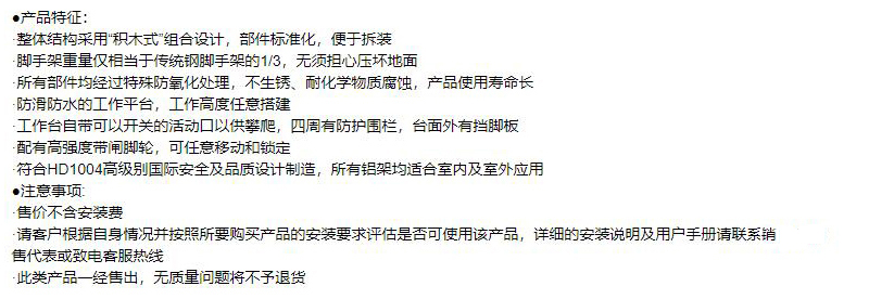 符合HD1004高级别国际安全及品质设计制造标准,所有铝架均适合室内及室外应用,广泛应用于建筑、维修、工业生产等领域。