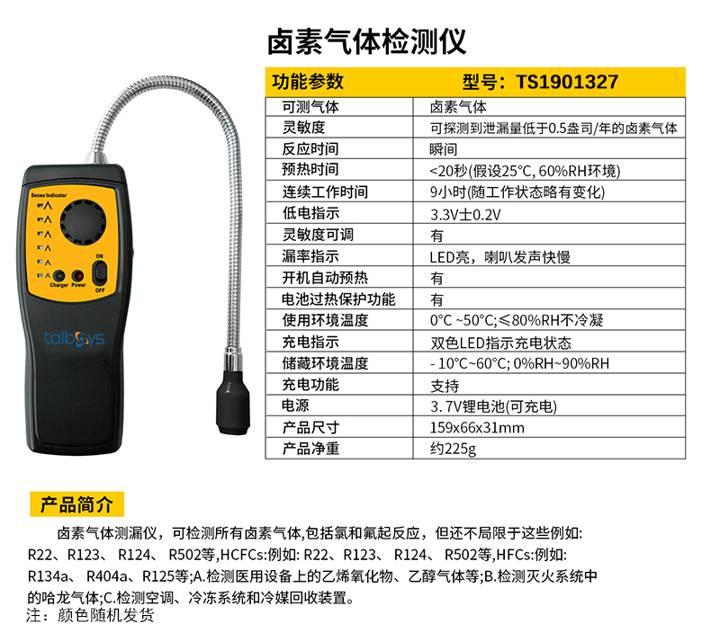 talboys/塔尔博伊斯 高精度数显卤素气体检测仪 <20s TS1901327