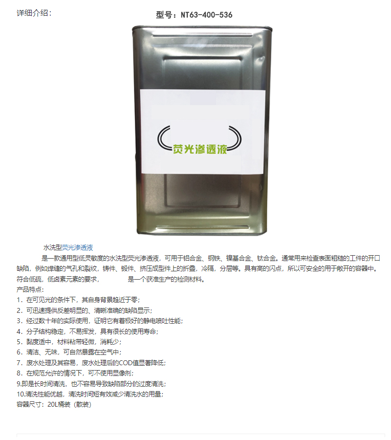 水洗型荧光渗透液 20L桶装 NT63-400-536