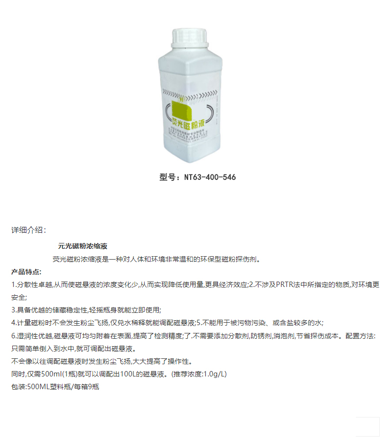 耐默特/NXMET 耐默特/NXMET 荧光磁粉浓缩液 500ml塑料瓶 NT63-400-546