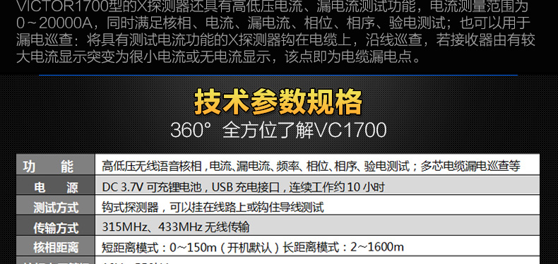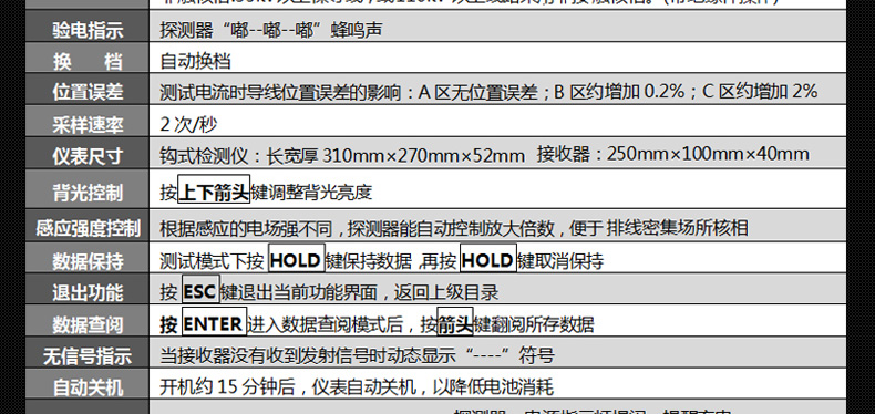 电流测试时,导线应置于钩式探测器的A区(无位置误差),避免在B/C区导致误差增加(B区+0.2%,C区+2%)