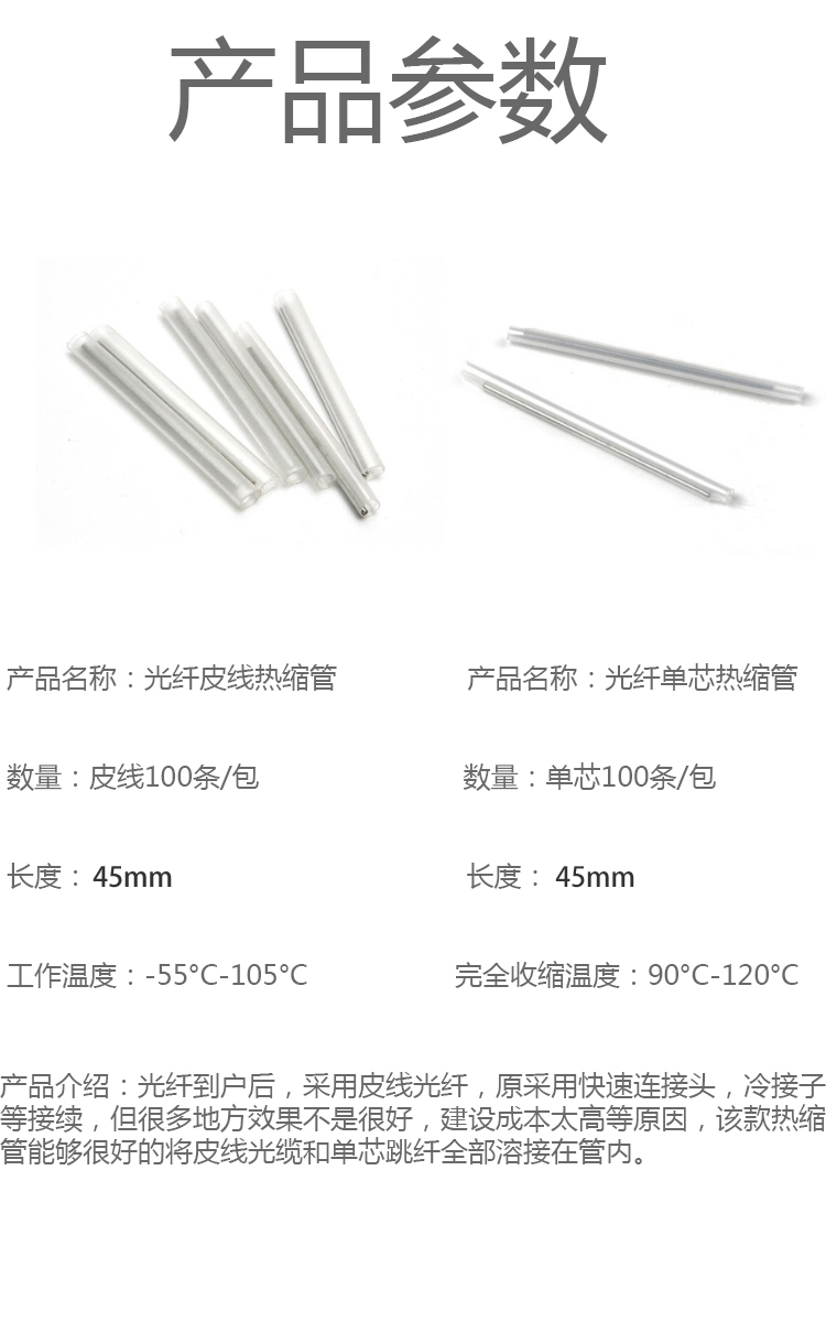 5 完全收缩温度为90℃至120℃,加热后紧密包裹光纤接续处