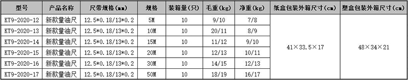 KENTA/克恩达 新款量油尺 12.5×0.18/13×0.2mm 20m KT9-2020-15