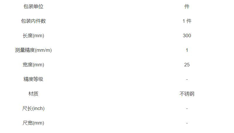 长度为300mm,宽度为25mm,尺寸设计合理,适用于多种测量需求。
