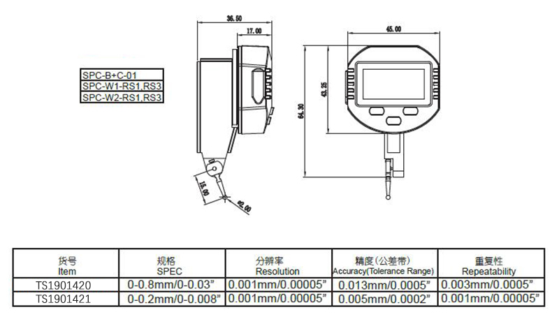 talboys(塔尔博伊斯) 数显水平型杠杆千分表 TS1901420具有以下特点: