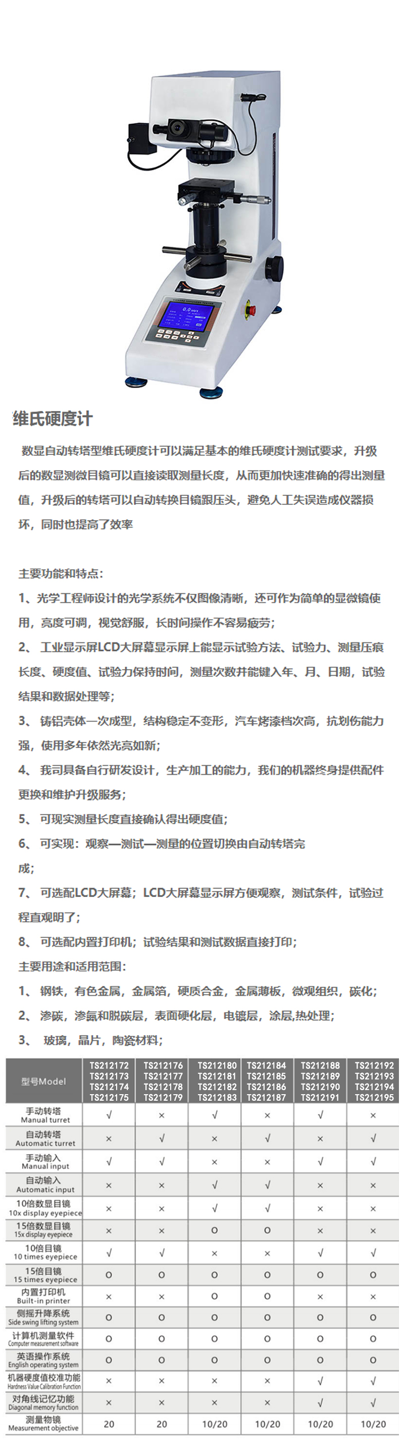 talboys(塔尔博伊斯) 数显维氏硬度计 自动转塔 自动输入对角线长度 大屏数显 外形尺寸585×200×630mm TS212194