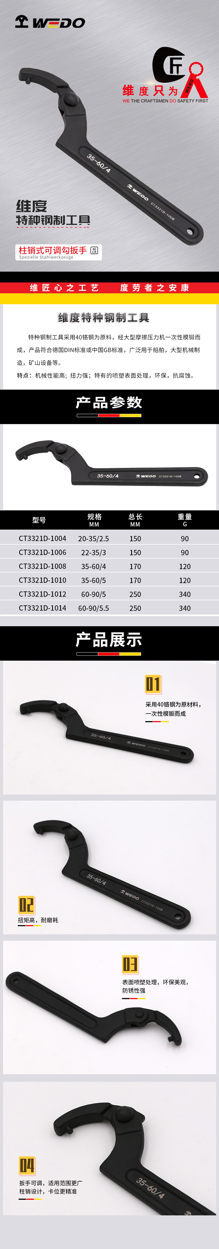 WEDO(维度) 柱销式可调勾扳手 CT3321D-1010具有以下特点: