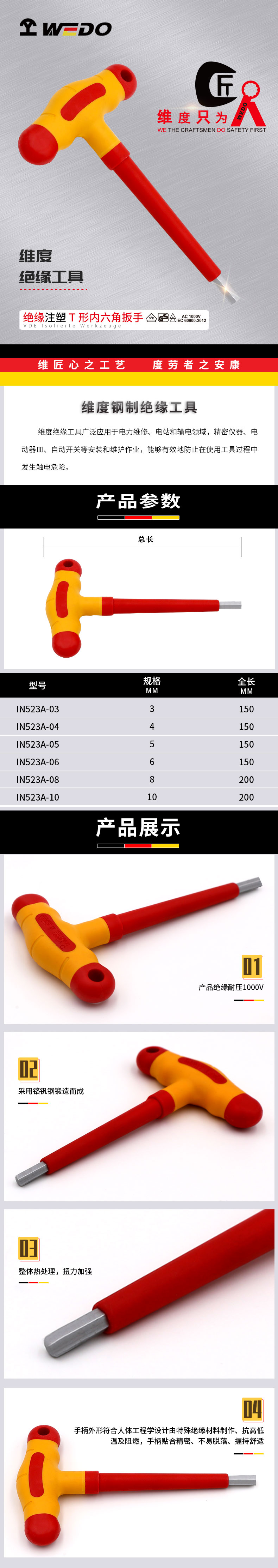 WEDO(维度) 绝缘注塑T型内六角扳手 VDE认证1000V 4*150mm IN523A-04
