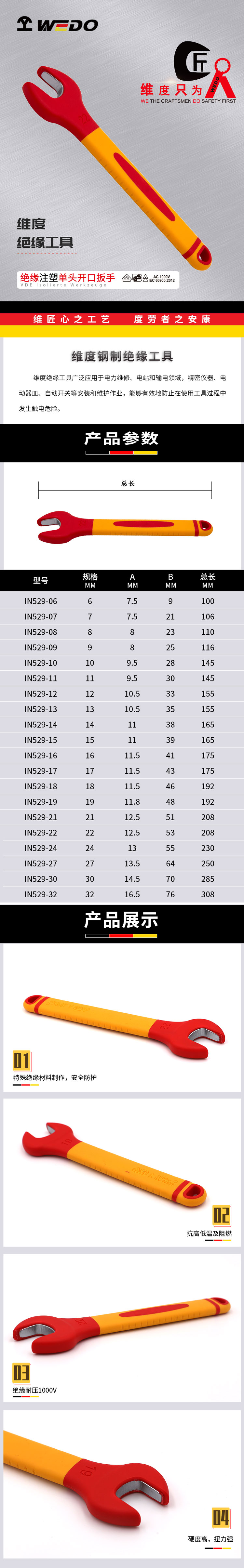 WEDO(维度) 绝缘注塑单头呆扳手 IN529-22具有以下特点: