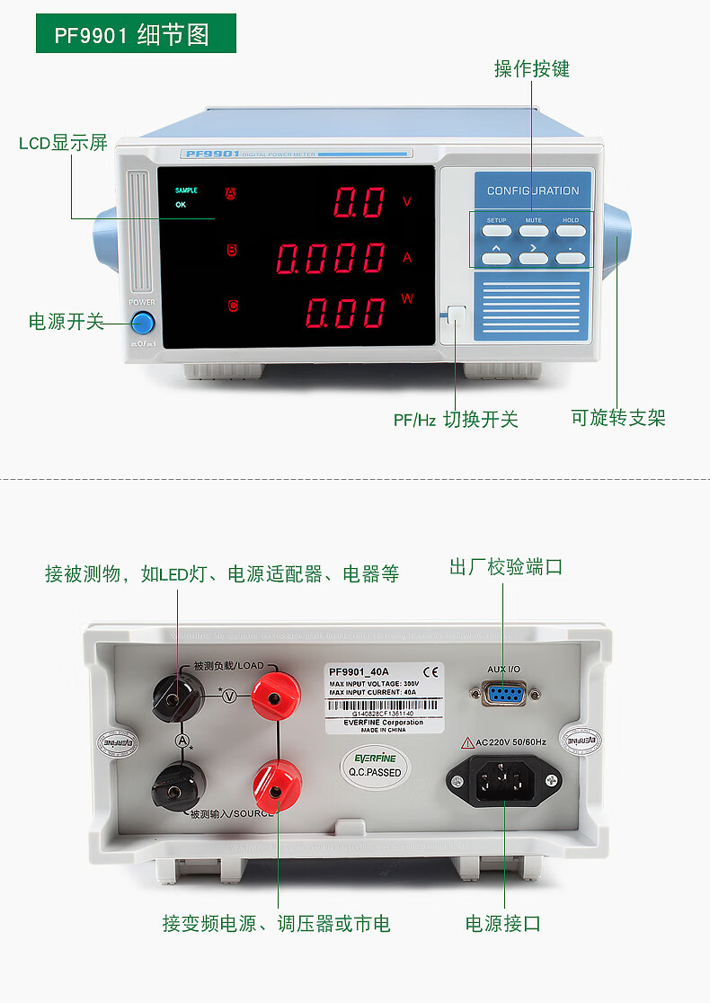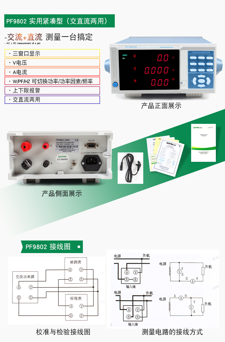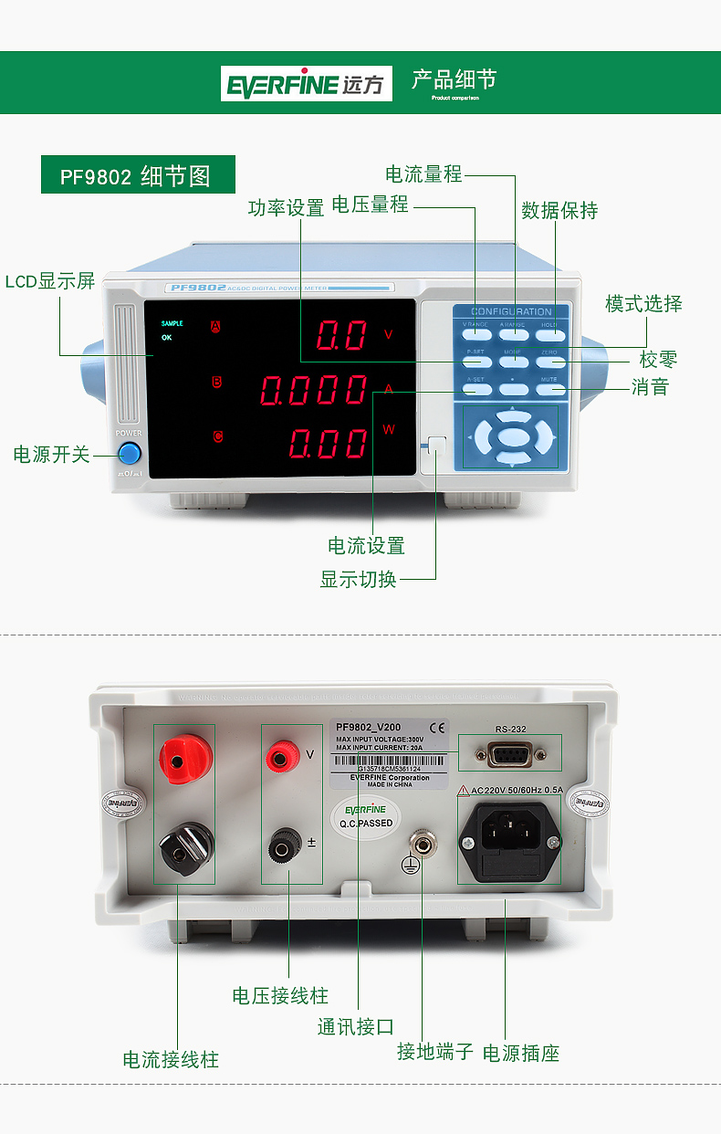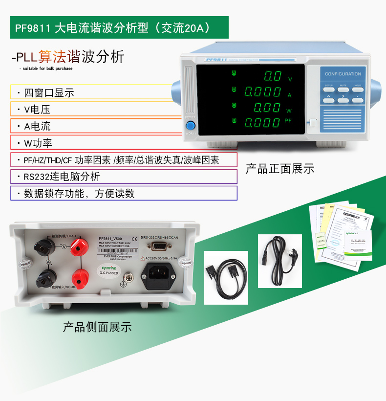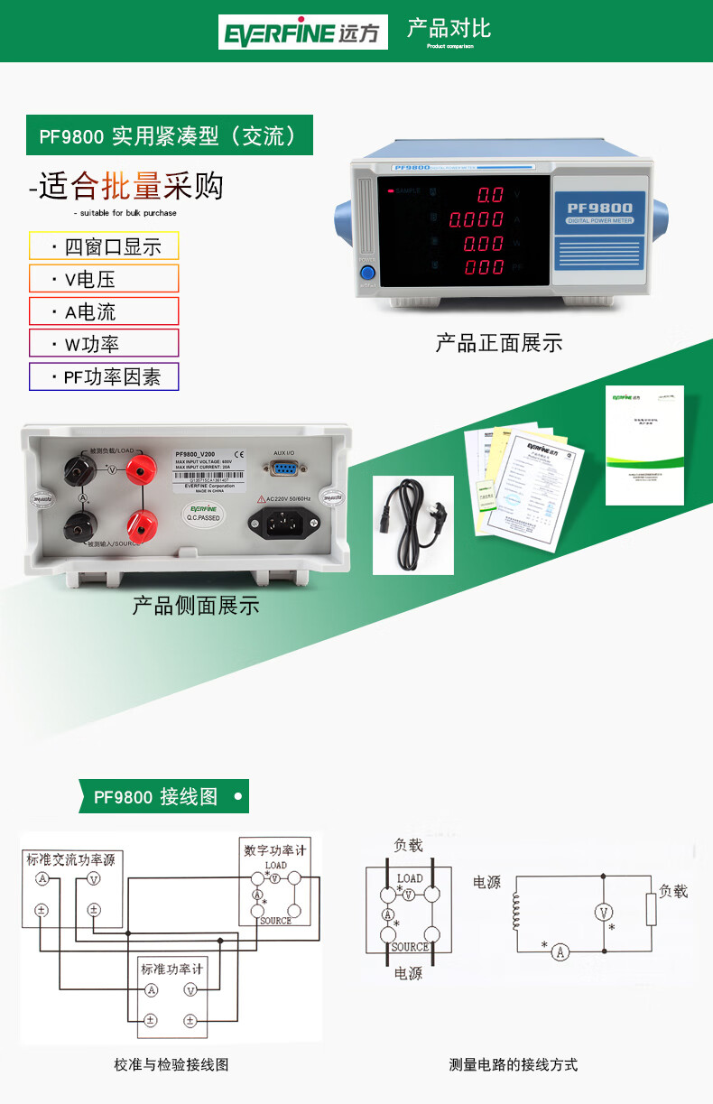 EVERFINE(远方)高精度谐波交流功率计电参数测试仪 小电流0.5mA-2000mA PF9810