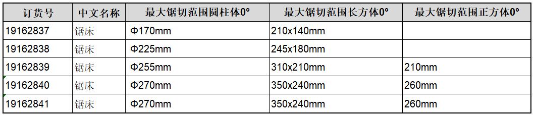 - 锯切范围 直径170mm(圆柱体)、210*140mm(长方体)