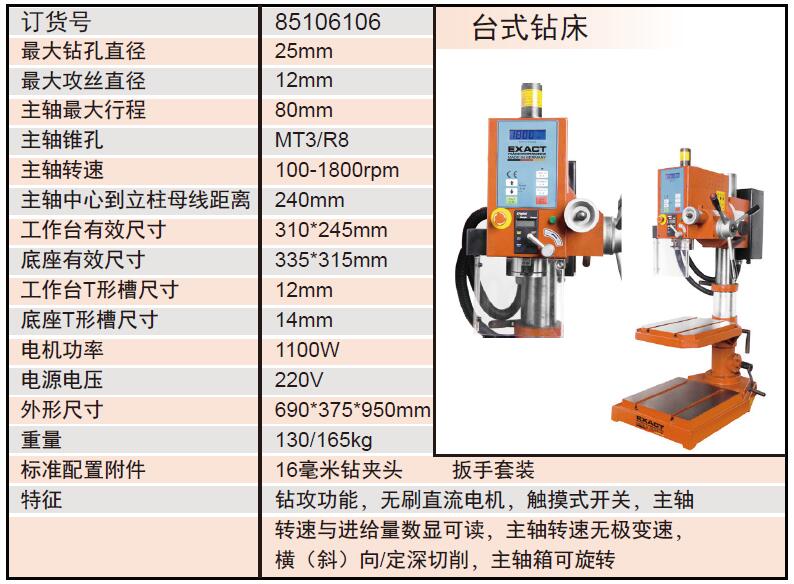 EXACT/赛特 台式钻床 85106106具备以下特点: