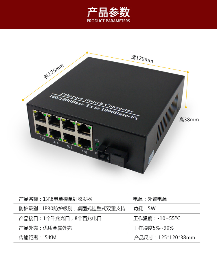 安装时请确认光纤收发器A端与B端正确对应,本型号为B端设备,需与A端设备成对使用,确保光信号双向正常传输。