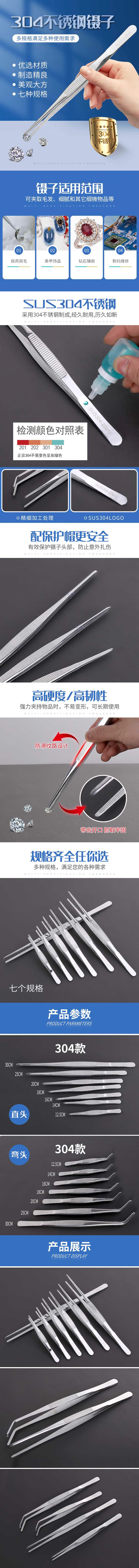 1 采用304不锈钢材质,确保镊子的耐用性和抗腐蚀性,经久耐用,历久如新。