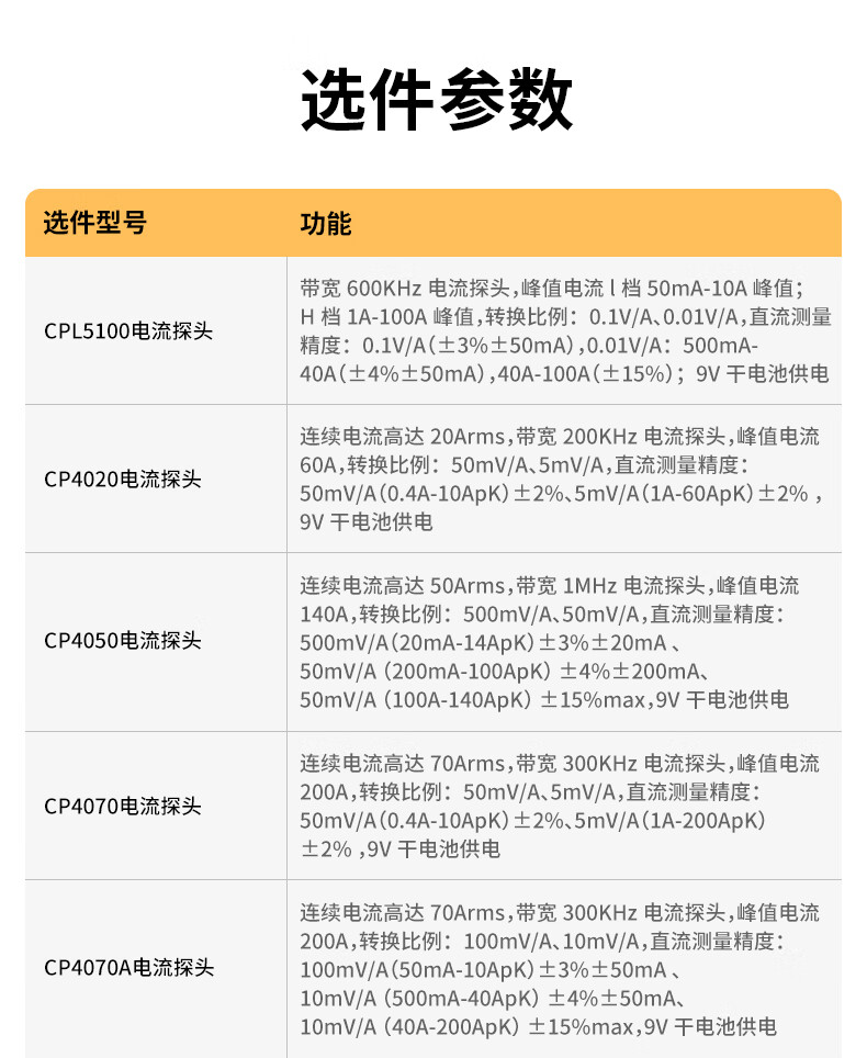 鼎阳(SIGLENT)CP4020 示波器配套电流探头交直流电流钳带宽100KHz峰值60A