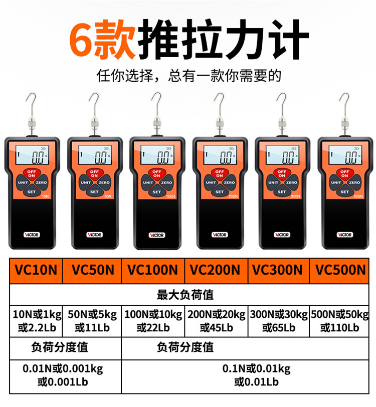 严禁超出仪器最大量程使用(VC10N最大负荷10N),测试值超量程100%时蜂鸣器连续鸣叫,需立即解除负荷,避免损坏传感器