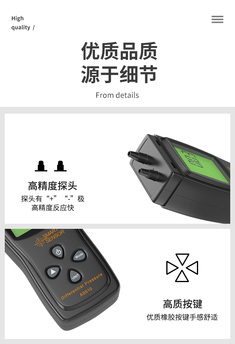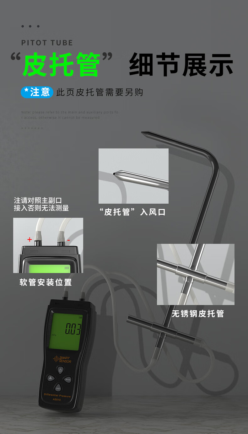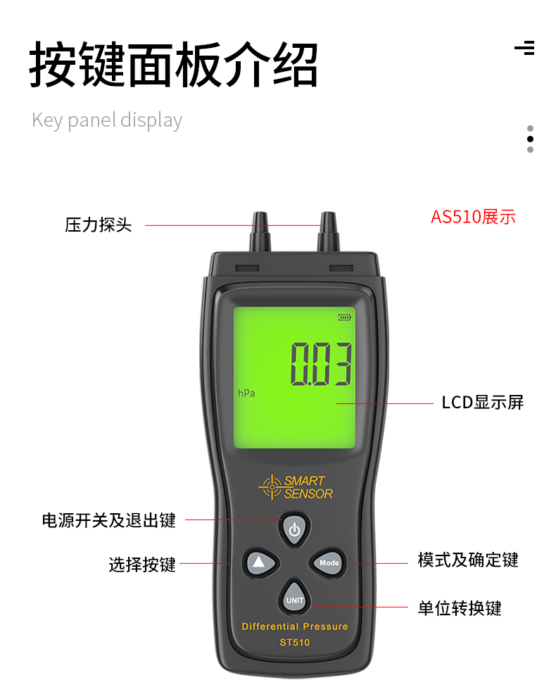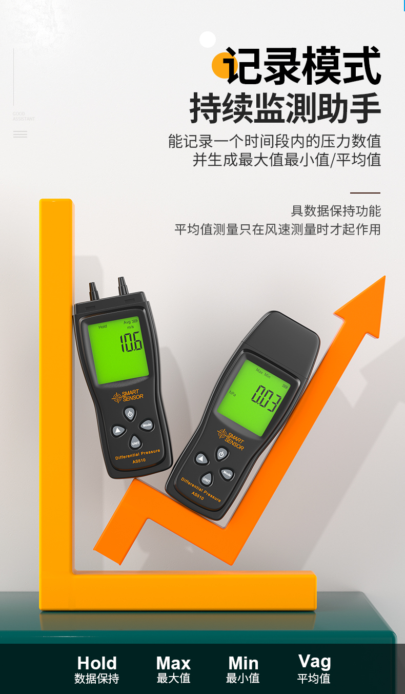 希玛 AS510 数显数字压力计压力测试仪压差表测量仪压差计差压压力表