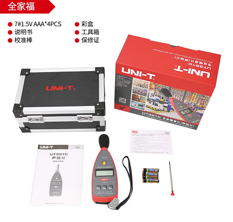 配件齐全:含7#1.5V AAA电池4节、说明书、校准棒、彩盒、工具箱、保修证