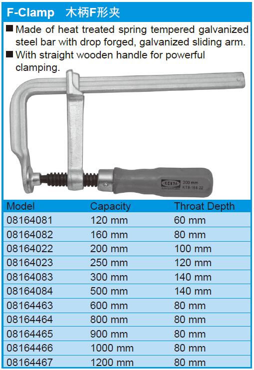 KENTA/克恩达木柄F形夹 KT8-164-83具有以下特点: