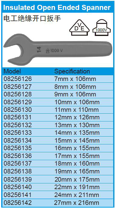 KENTA/克恩达电工绝缘开口扳手KT8-256-127具有以下特点: