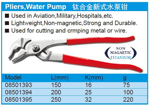 KENTA/克恩达钛合金新式水泵钳KT8-501-393具有以下特点: