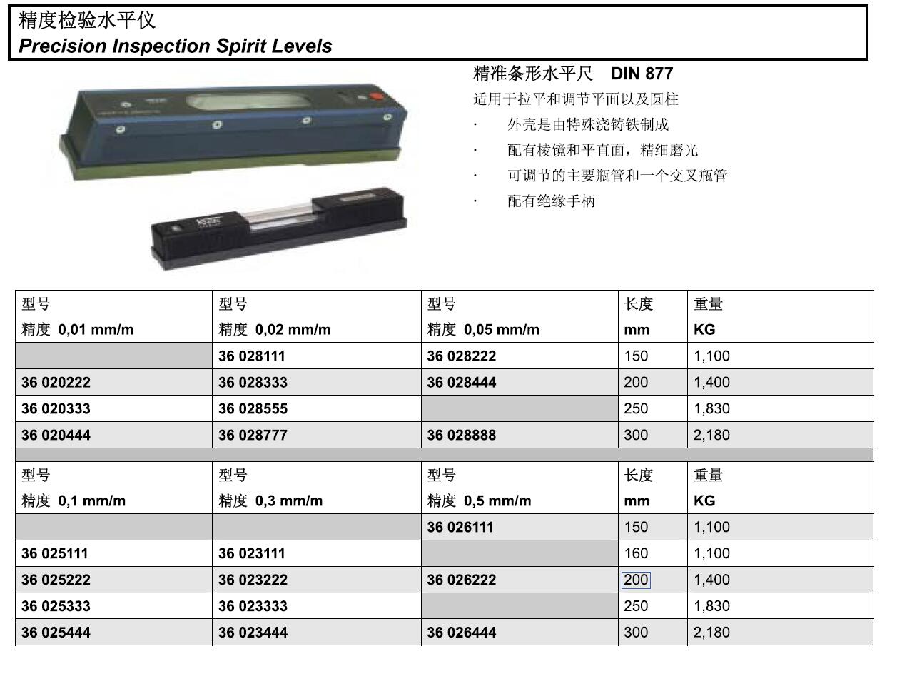 2 长度300mm,分辨率0.05mm/m,符合DIN 877标准