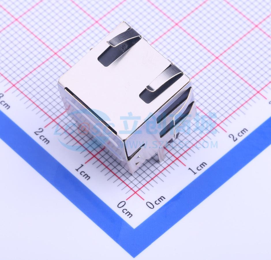 名称:网口插座 56-LED(左黄右绿)-有弹