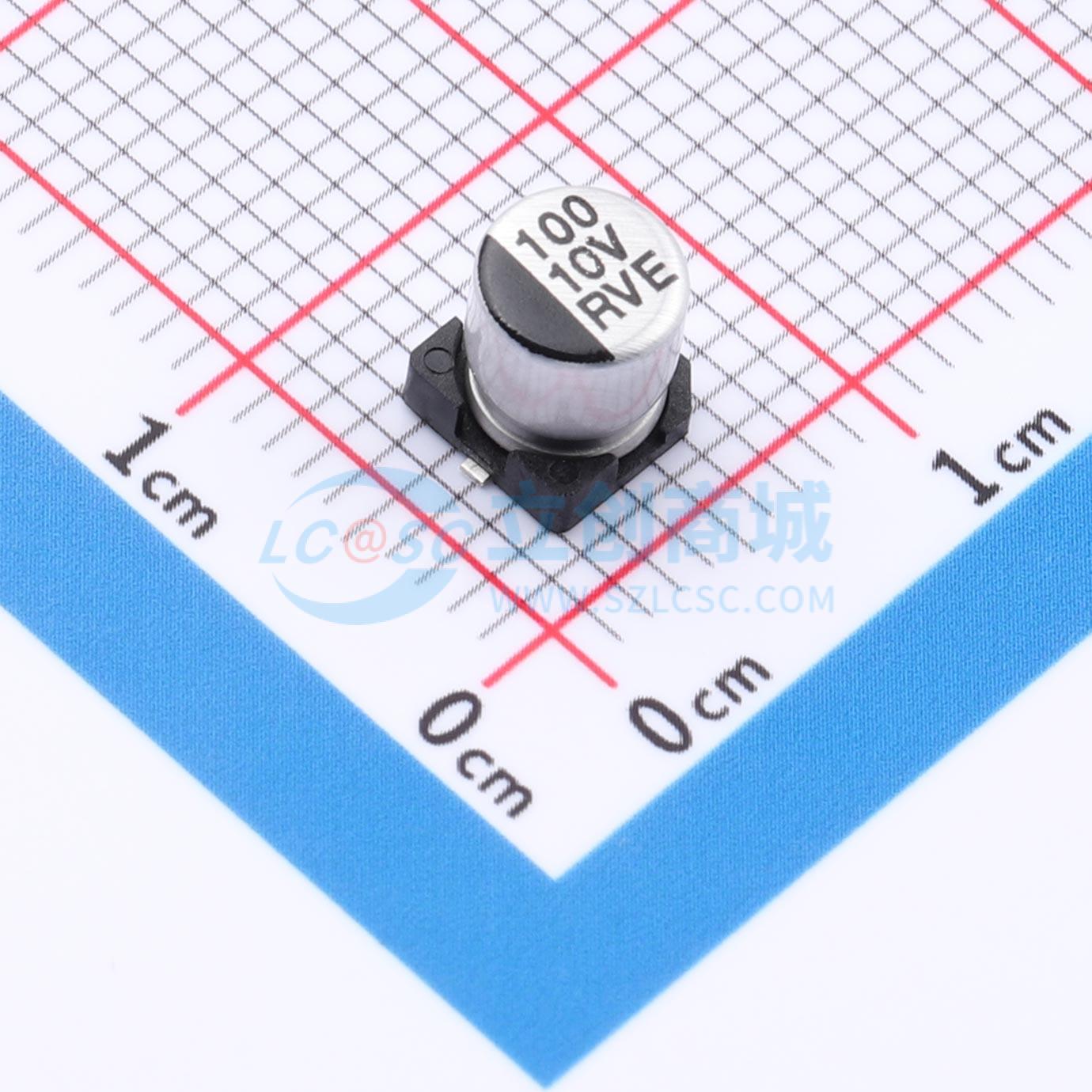 此图展示了型号为 RYRVE10V100UF5*5 的引脚布局